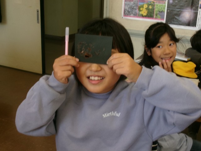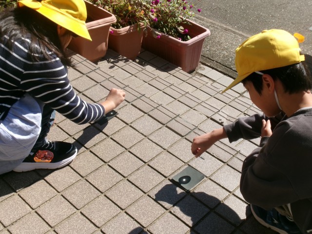 太陽の光の強さを感じた子供たちです。