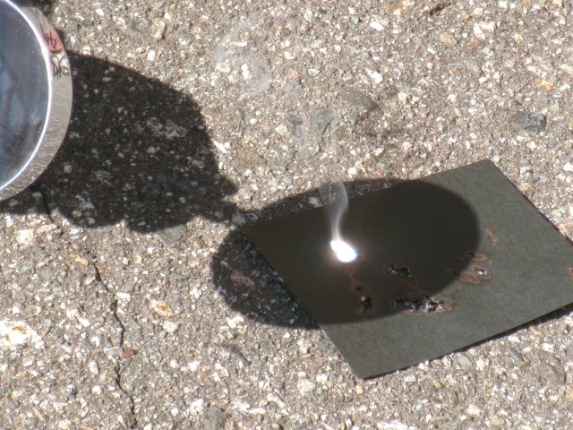 煙が上がり、黒い紙に穴が開きました。