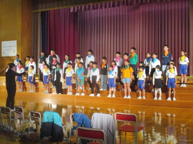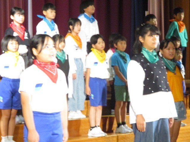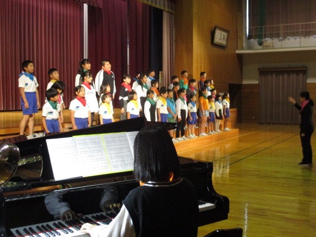 全校合唱「エール!!」です。全校のみんなで心を一つにして、歌声を響かせました。
