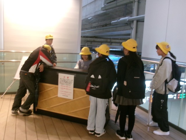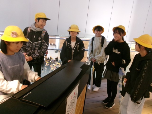 構内にあったピアノで「エール」を弾き、みんなで歌いました。