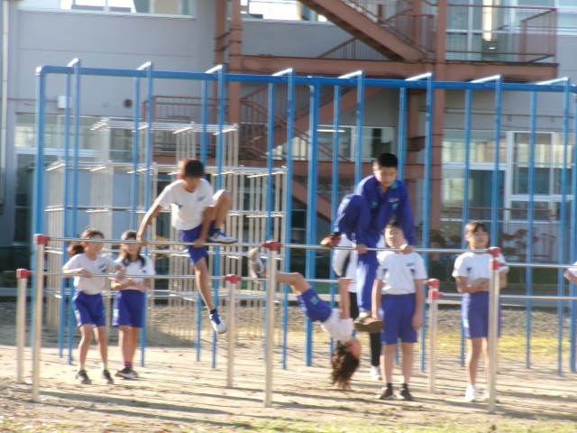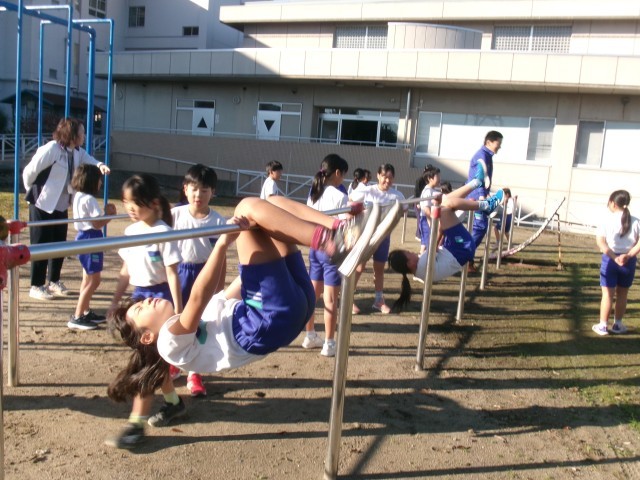 鉄棒や走り幅跳びなど、様々な運動に慣れ親しむ池多っ子です。