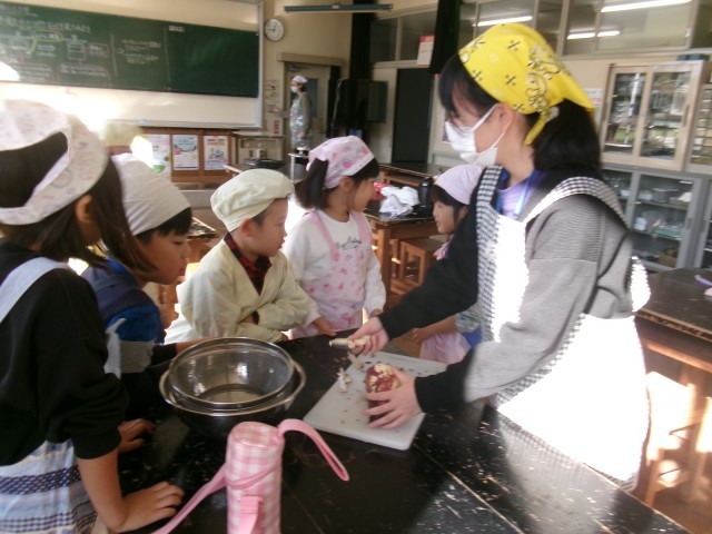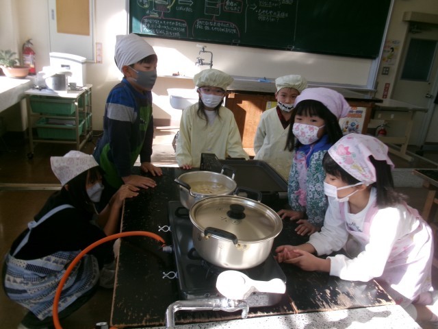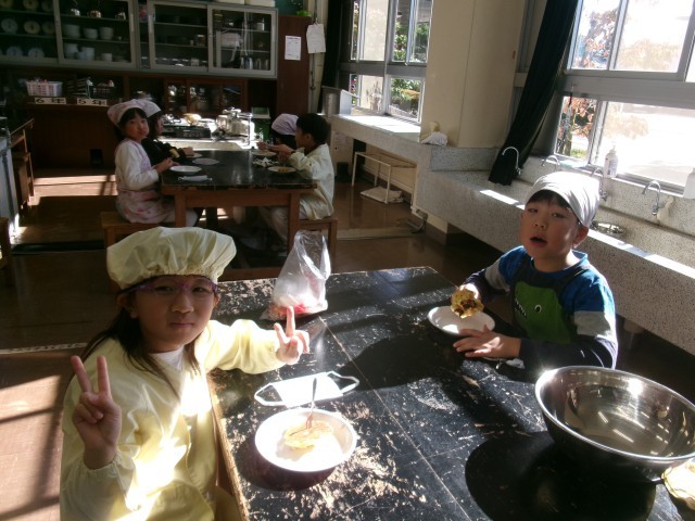 ホットケーキの素に、細かく切ってゆでたさつまいもを加え、焼きます。
