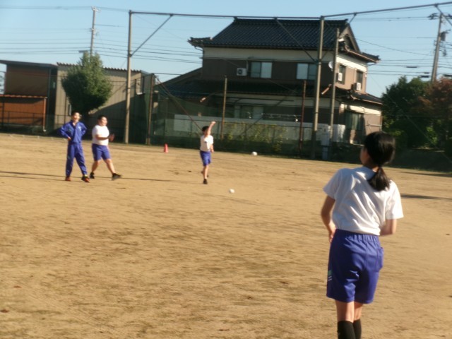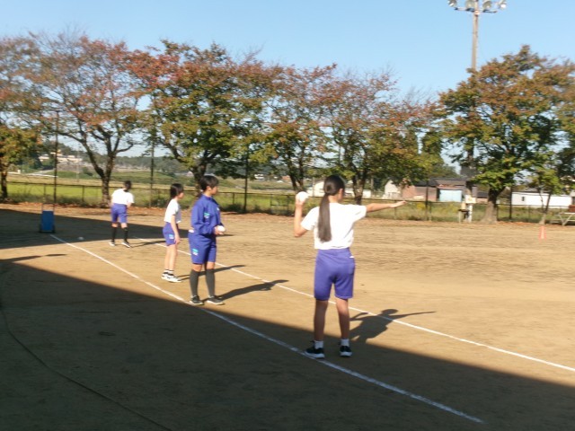 ソフトボール投げで自己記録が出せるか、力いっぱいの練習が始まりました。