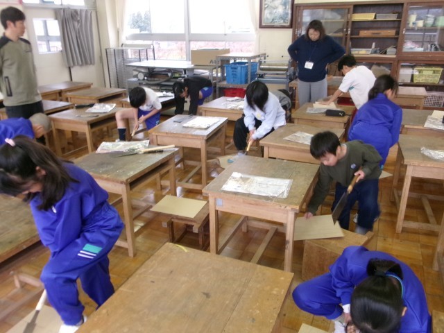 のこぎりの左右の刃を使い分けながら一生懸命作業していました。