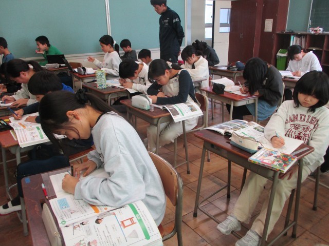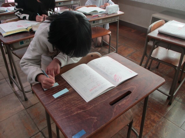 上学年のファミリー学習です。今日のサークルトークのテーマは「家族」です。家族の好きなところやお手伝いしたことなどをサークルで楽しそうに話していました。友達のノートのすてきなところを見つけて、自分の学習に取り組みました。
