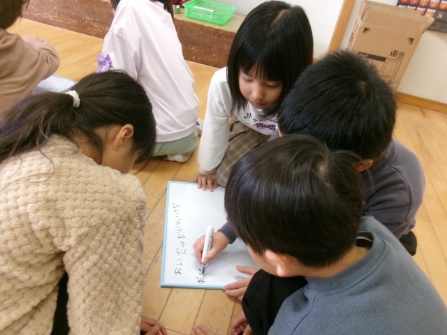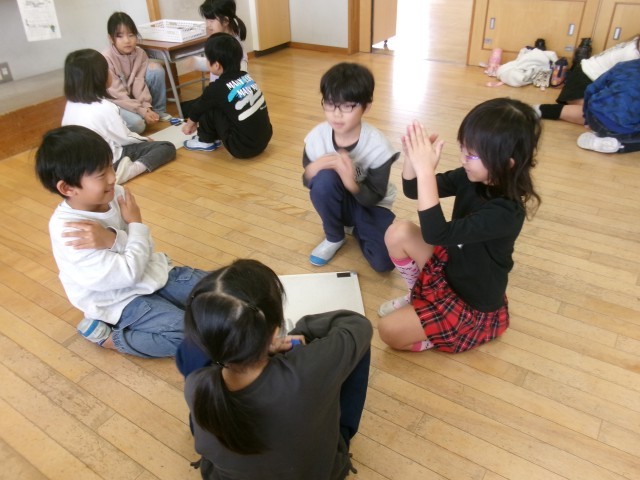 下学年は「しりとりゲーム~バナナをゴリラに~」を、上学年は「わたしの町のお店屋さん」をそれぞれ楽しみました。
