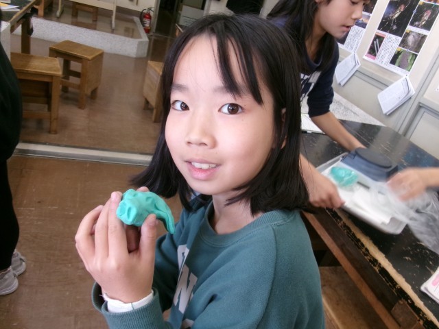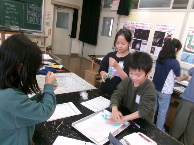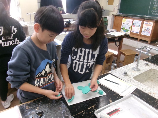 粘土を楽しみながら、理科の学習をする子供たちです。