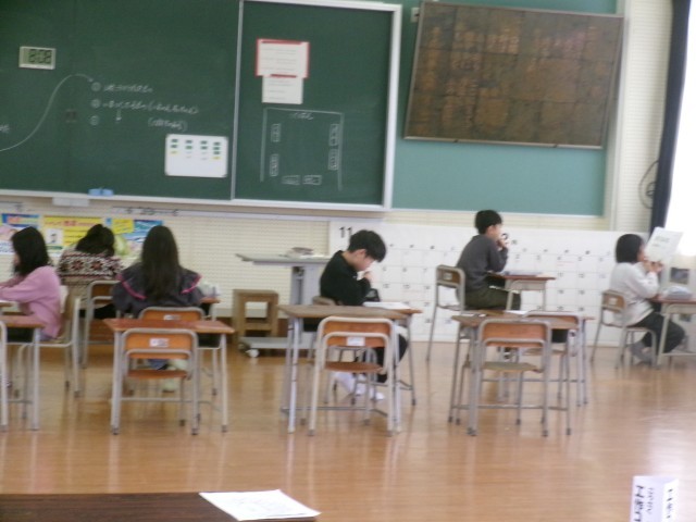 いつも生活・総合で使っている視聴覚室で、静かにテストをしていました。