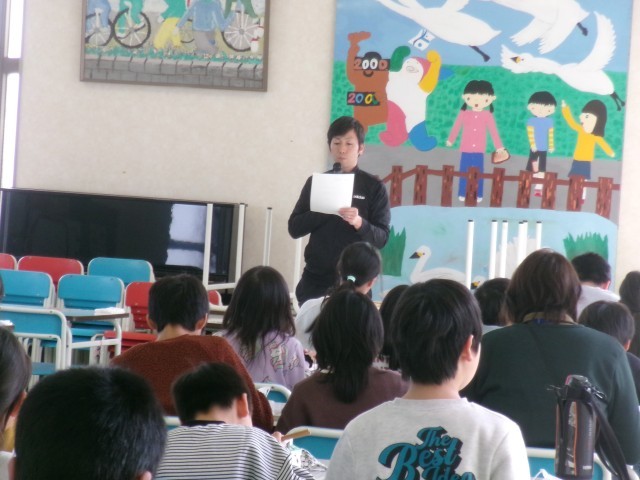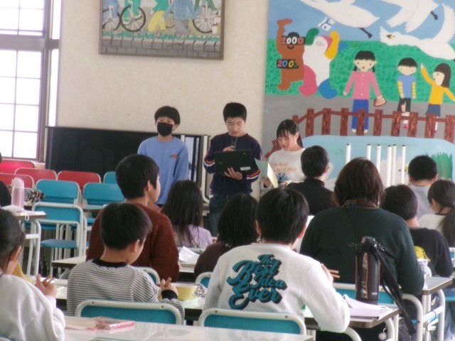 今週は、情報委員がおすすめの百人一首を読み、みんなに意味を伝えています。