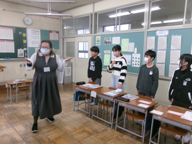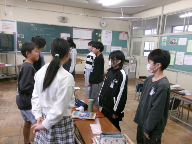 次から次へと英語の対話を繰り広げる5年生。