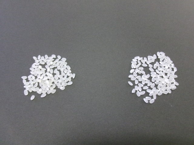通常のお米が左側。イセヒカリが右側。