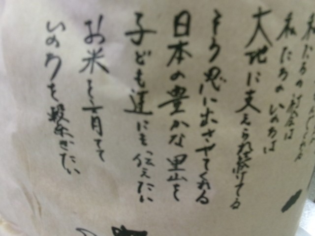 米の袋にも、心のこもったこだわりの文章が。