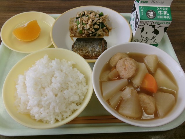 そのほか、大豆の使用、具だくさんのおでんなど、今日も子供たちの健康をよく考え、新鮮な食材で作られた給食です。