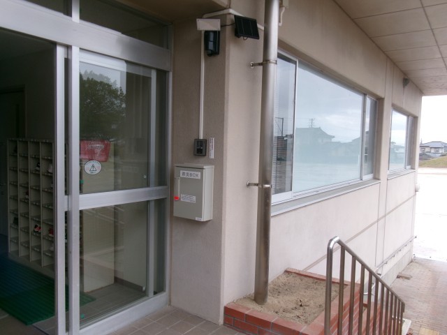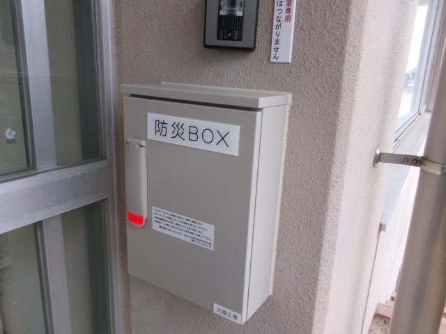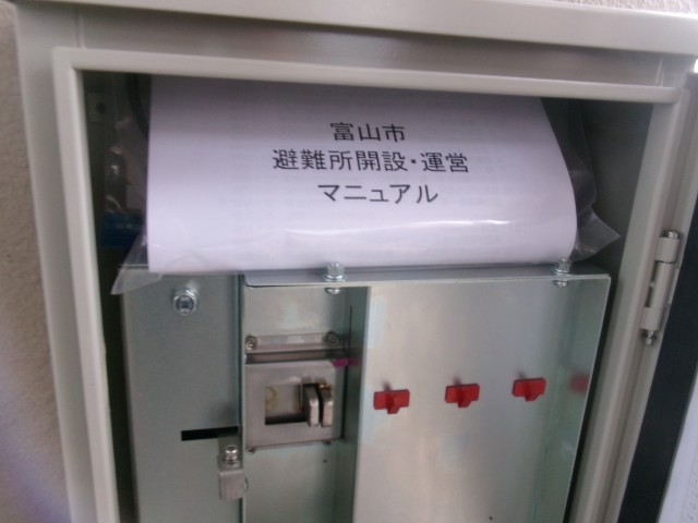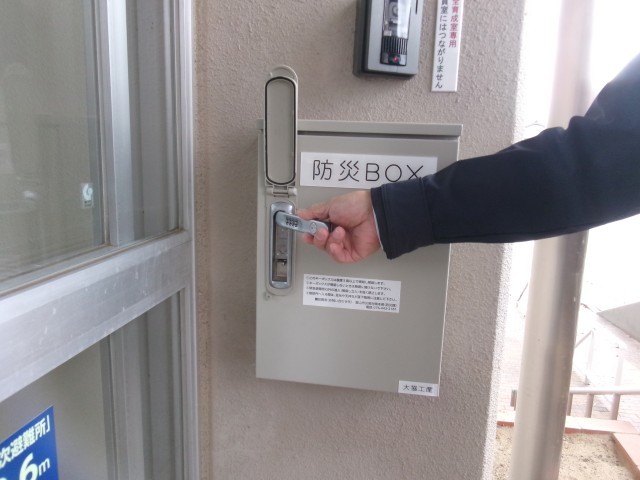体育館入り口に防災BOXが取り付けられ、その説明がありました。