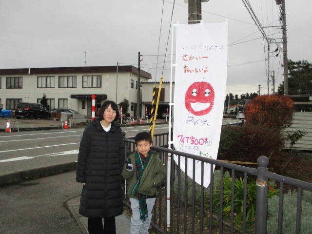 生活・総合的な学習の時間に作成した池多りんごを宣伝するのぼり旗を西押川の交差点に設置しました。