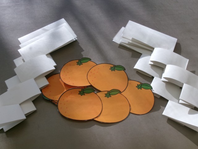 先生方や助手の方で、紙垂やミカンの紙を準備しました。