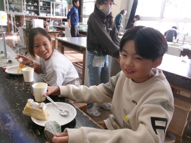 学級活動の時間に、おいしそうなケーキを作っていました。
