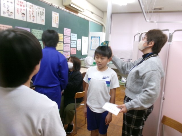 結果を記入したカードを持ち帰りますので、ご家庭で確認をお願いします。