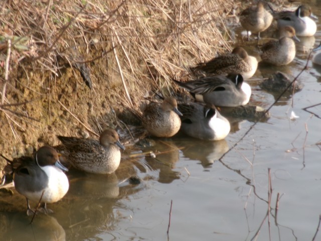 1羽だけ枯草の上に上がっていたカモ。
