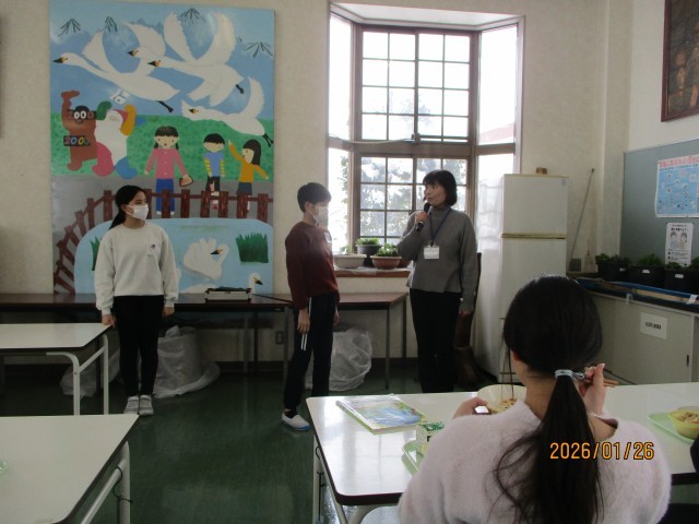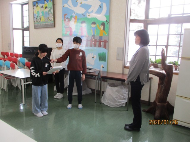 日頃、自分たちの学校生活を支えてくださっている方に仕事の内容や気を付けておられることをインタビューしたり、手紙を読んでプレゼントしたりして、感謝の気持ちを伝える1週間です。今日は、普段なかなかゆっくり話す機会がない事務職員の方の仕事の様子をお聞きしました。6年生代表の児童が、感謝のお手紙を読みました。