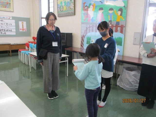 ありがとう週間2日目は、助手の方とスクールサポーターの方にお話を聞きました。それぞれ池多っ子と先生方を助けたいと思って仕事をしていることや挨拶を大切にしていることについてお話しをされました。1年生と5年生の代表の子供がお礼の手紙を読んで渡しました。