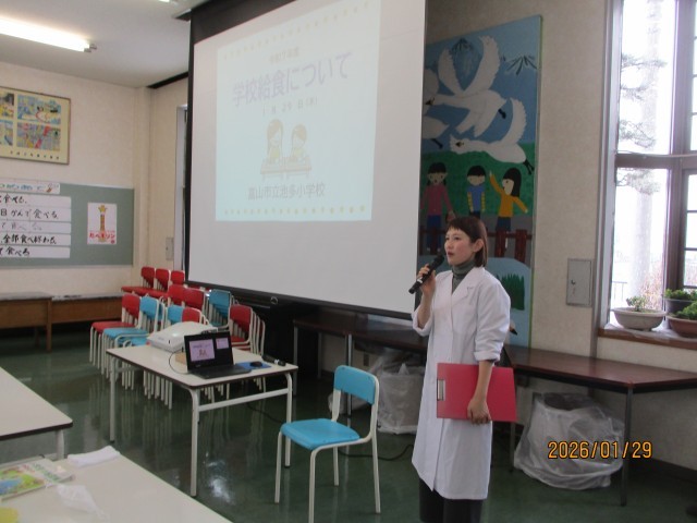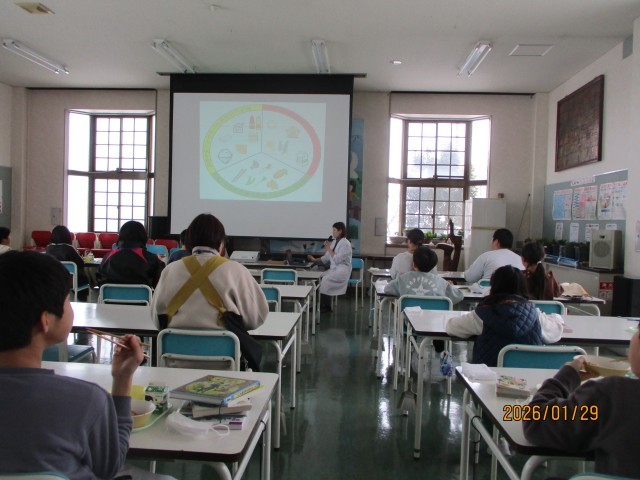 今日は、学校保健課の西田栄養士さんにお出でいただき、お話を聞きました。