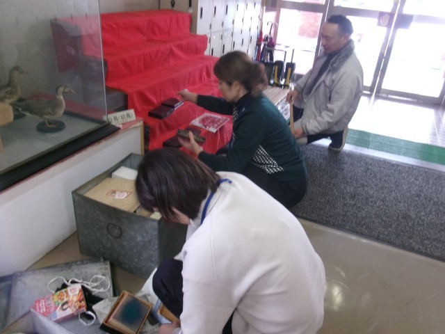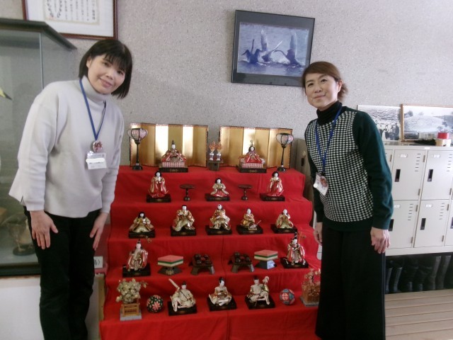 事務員さん、助手さん、用務員さんが、今年もひな人形を飾ってくださいました。