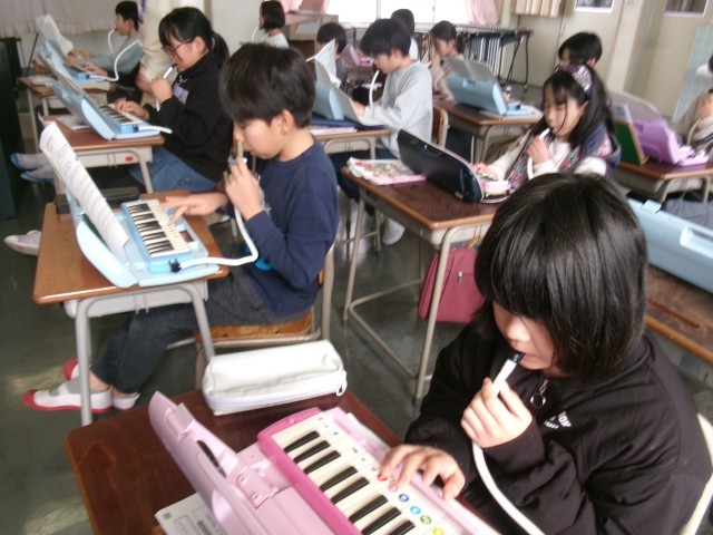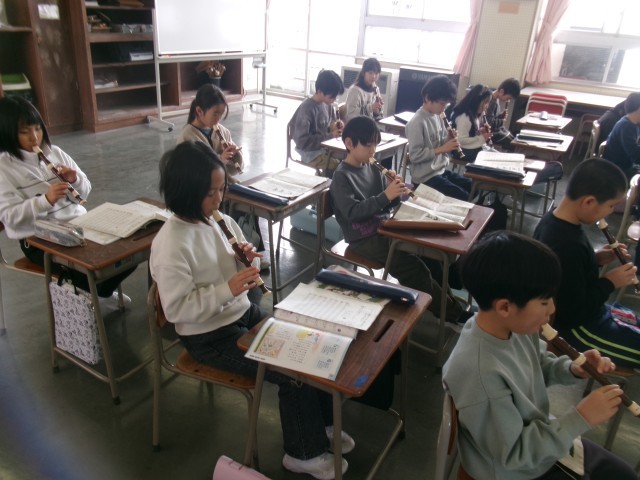 3年生が上のパート、4年生が下のパートを吹いていました。