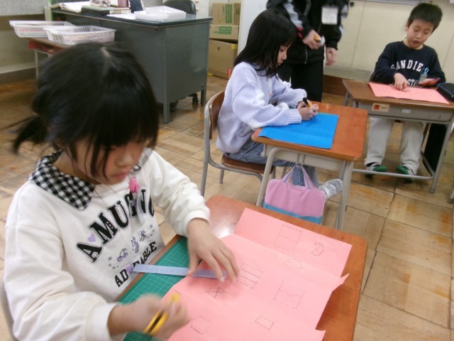 ナイフの使い方を確認しながら、安全に気を付けて、形の違う窓を丁寧に切ろうとしていました。