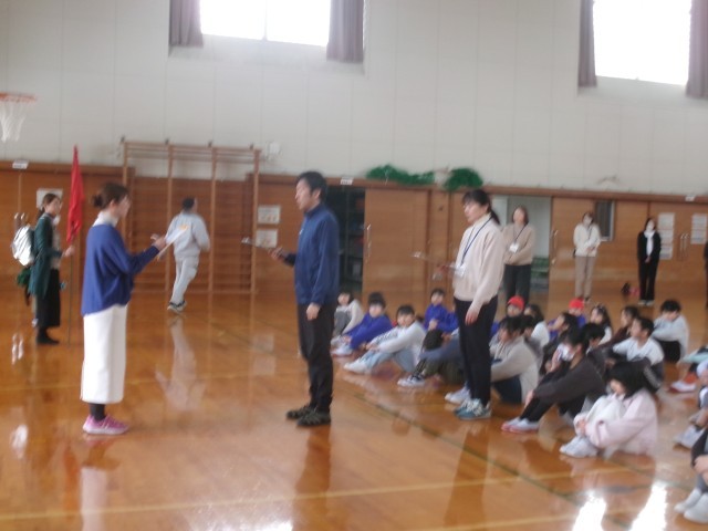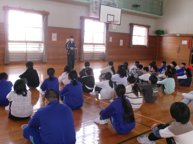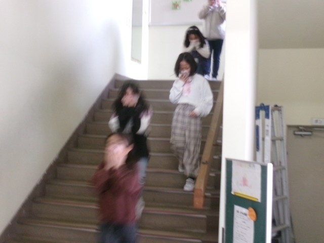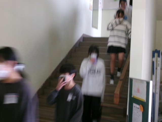 防災主任から、ハンカチで口を覆うこと、姿勢を低くして避難することの大切さについて話がありました。