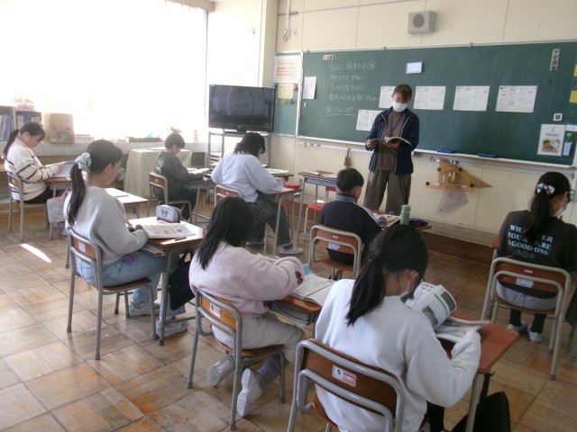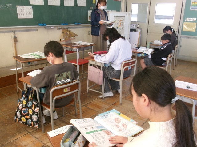 声に出して教科書を音読する5年生。