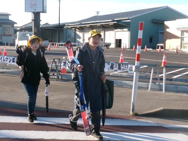 あさってのスキー学習に向け、マイスキーを持って登校する児童がいました。