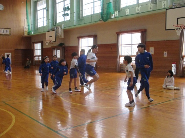 八の字跳びが苦手な子供が跳べた時、「ナイス!」と声をかける姿や、そっと背中を押してタイミングを教えてあげる上級生の姿が印象的でした。