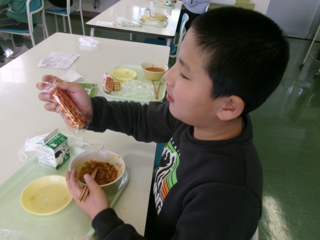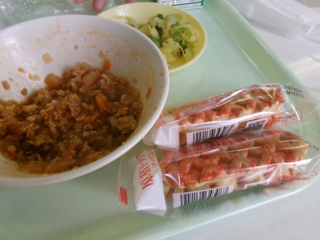 今日の給食にはチーズドッグが付いています。