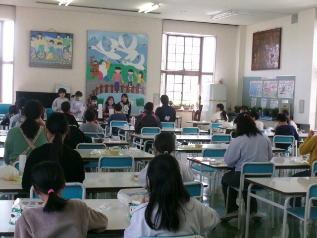 給食風景 3年生 標語発表