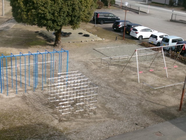 ブランコやジャングルジムを覆っていた雪もなくなりました。