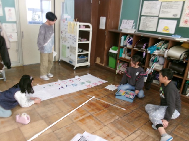 活動が終わった子供たちは、卒業を祝う会の花づくりに励んでいました。