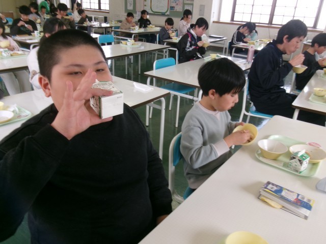 みんなで6年生の卒業を祝う「お祝い給食」です。