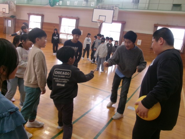 事前のアンケートで希望を取り、1~4年生チームと5・6年生チームに分かれた王様ドッジボール大会を行います。