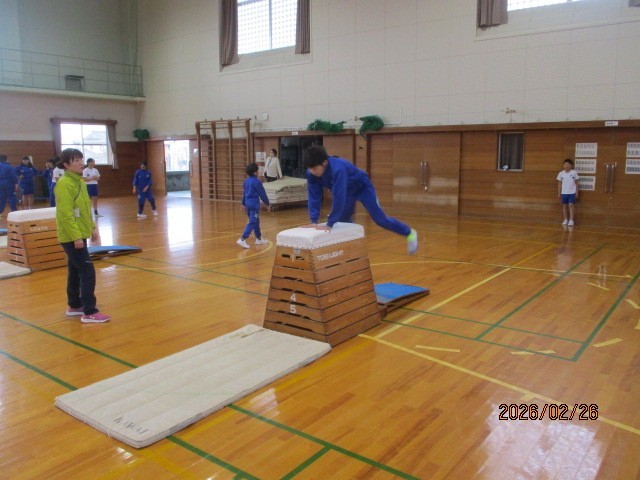 今日は最後の跳び箱運動でした。挑戦したい技に合わせて場を選び練習に取り組みました。手を付く位置や踏み切りの強さなど、それぞれが課題を意識しながら取り組む姿が見られました。