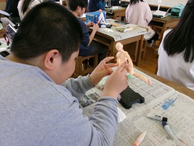 絵の具を混ぜた粘土をこねて髪の毛にしたり、洋服にしたりしていきます。