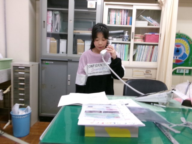 地域のお店に、白鳥探検隊で作成したポスターやパンフレットを設置していただくお願いの電話をしました。