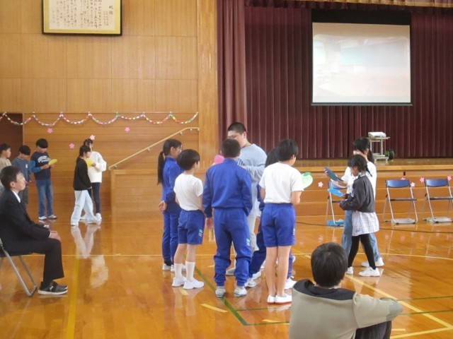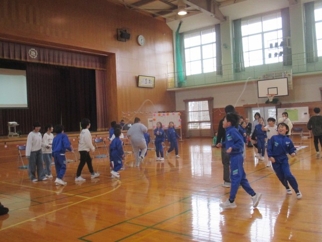 これまでお世話になった6年生と一緒に、ジェスチャーゲームや長なわ、クイズなどを楽しみました。