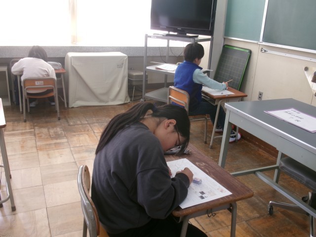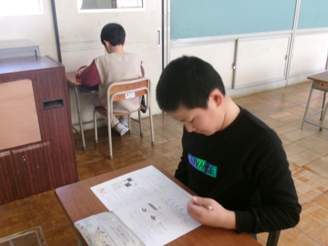 その隣の教室で、4年生が一生懸命理科のまとめのテストをしていました。