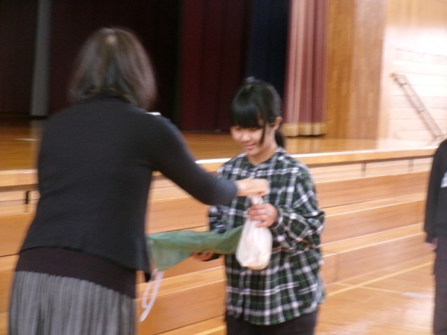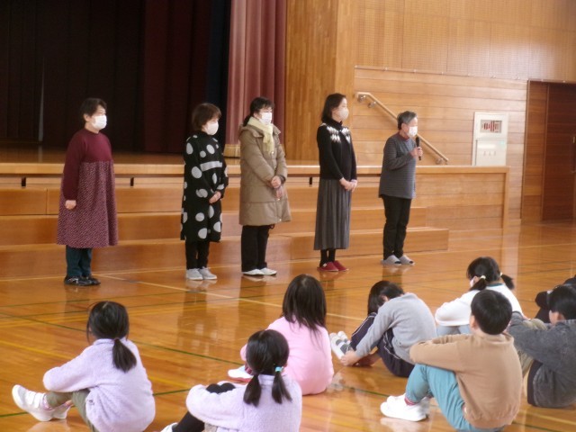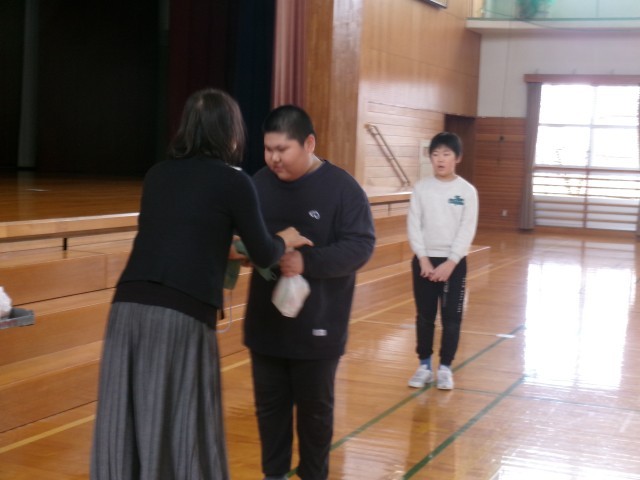 はくちょう子供会の皆様より、卒業生は卒業を祝う記念品として写真付きフォトフレームを、そして池多っ子全員は卒業生をお祝いするためのケーキとジュースをいただきました。