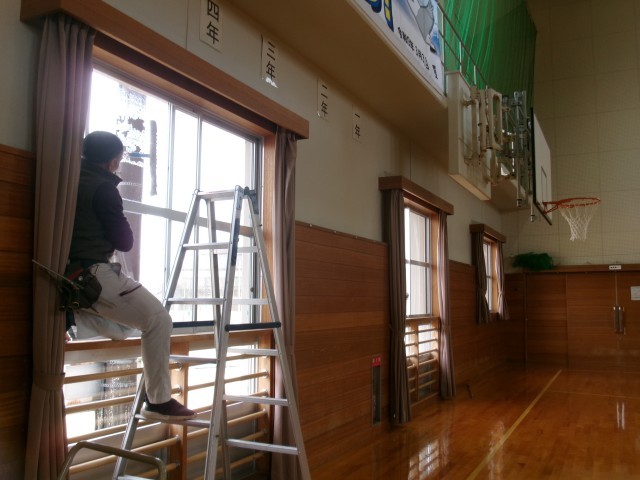 子供たちの練習の横で、用務員さんが一生懸命窓を磨いてくださっていました。