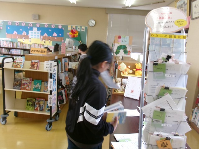 休み時間は3・4年生で図書室がにぎわっていました。