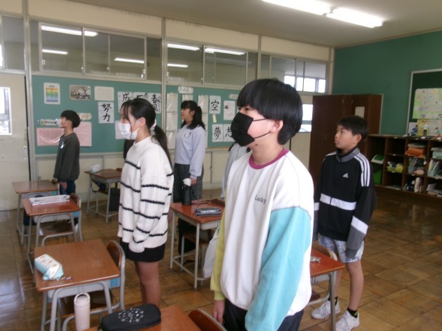2限の卒業式予行に備えて、一生懸命、言葉の練習です。