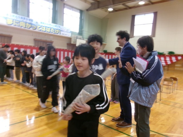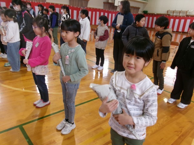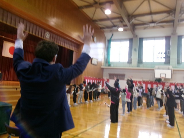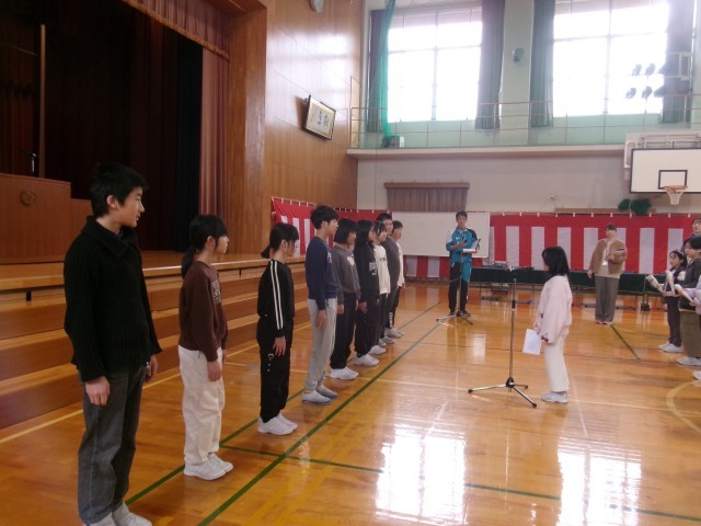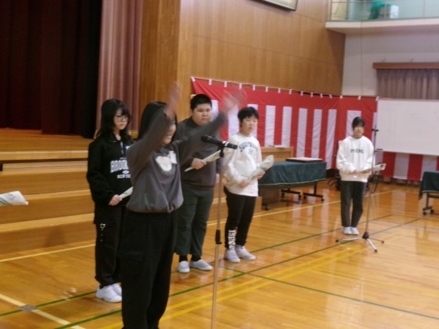 今日は雨のため、体育館で門出の式の練習をしました。