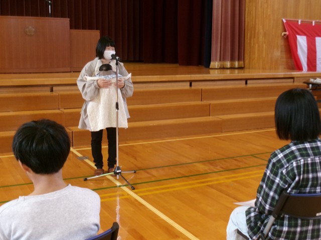 育休に入っている養護教諭が、卒業式を前に来校しました。